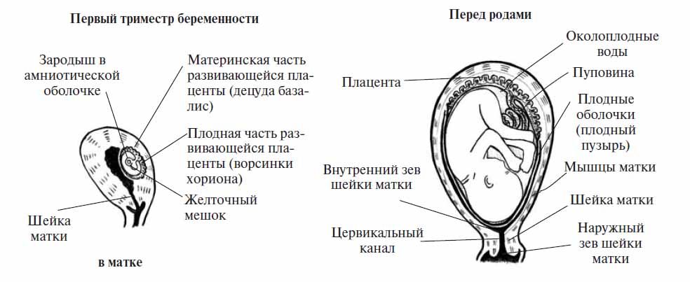 Во время беременности в организме женщины происходят определенные изменения. Матка — полый мышечный орган в тазу, заключающий в себе развивающегося ребенка. Ее размеры увеличиваются с 5—6 см до 50 см и более, а масса с 60 г до 800 г к концу беременности. По мере увеличения матки диафрагма смещается вверх, поджимая и стесняя легкие и серце, грудная клетка расширяется на 4—5 см. В мочевом пузыре, стесненном растущей маткой, остается все меньше места для накопления мочи — позывы к мочеиспусканию становятся более частыми. Кишечник работает с меньшей активностью, возможны запоры, из-за гормональных изменений и возрастающего давления матки, сжимается желудок.
